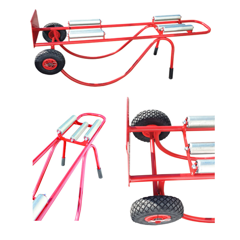 Dank des stabilen Stahlrahmens, der pneumatischen Räder und der drehbaren Rollen lässt sich der Bodenbelag gleichmäßig und ohne Anheben der Rolle abrollen.