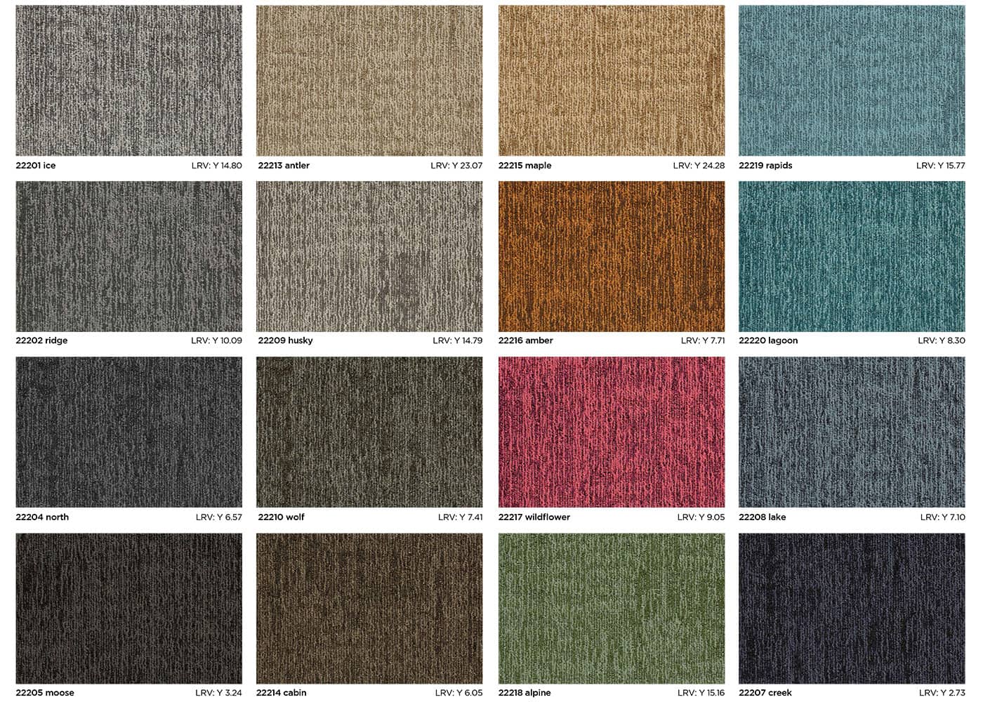 Ein besonderes Merkmal der Kollektion ist die an natürliche Landschaften angelehnte Farbpalette. Von kühlen Grautönen über warme Beige- und Braunnuancen bis hin zu ausdrucksstärkeren Farben bietet die Serie insgesamt 16 verschiedene Farbvarianten. Dazu gehören beispielsweise Ice, Ridge, Husky, Amber, Wildflower, Lagoon oder Creek.