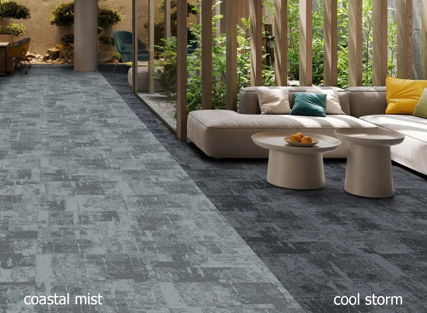 Die Kollektion ist sowohl als klassische Teppichfliese im Format 50 × 50 cm als auch als Planke im Format 25 × 100 cm erhältlich. Diese Kombination eröffnet vielseitige Gestaltungsmöglichkeiten – von ruhigen, homogenen Flächen bis hin zu dynamischen Verlegemustern.