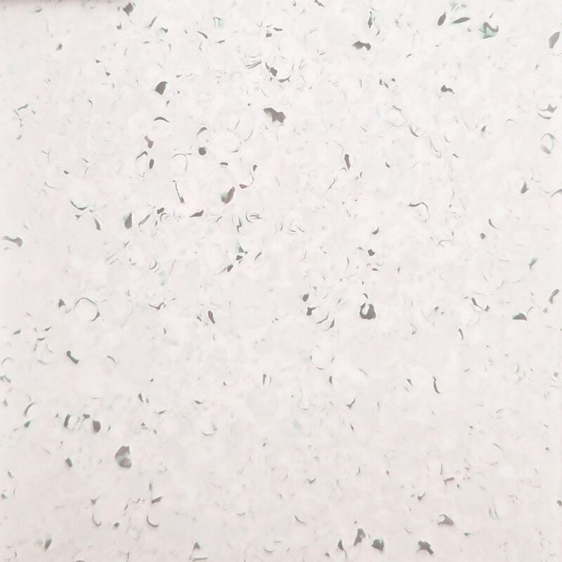 Die Oberfläche zeichnet sich durch eine gleichmäßige Struktur mit eingestreuten, unregelmäßigen weißen und grauen Partikeln aus, die dem Boden ein modernes, leicht terrazzoähnliches Aussehen verleihen. Dieses dezente Design lässt sich hervorragend in funktionale Innenräume integrieren, ohne auf eine professionelle Optik zu verzichten.