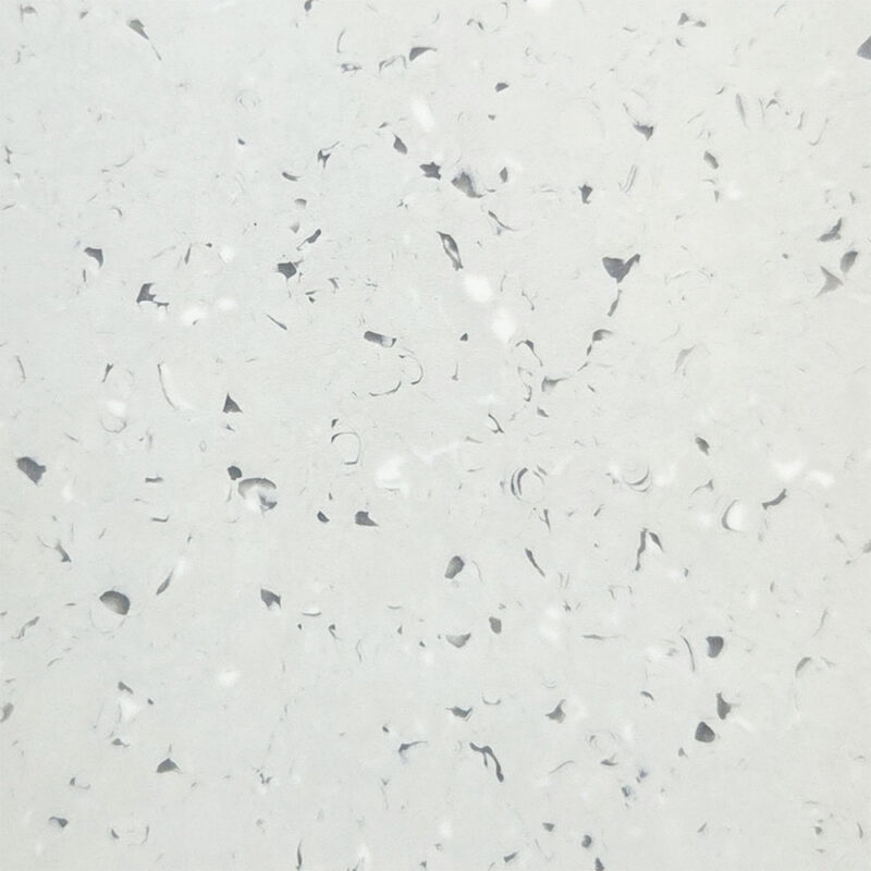 Die Oberfläche zeichnet sich durch eine gleichmäßige Struktur mit eingestreuten, unregelmäßigen weißen und grauen Partikeln aus, die dem Boden ein modernes, leicht terrazzoähnliches Aussehen verleihen. Dieses dezente Design lässt sich hervorragend in funktionale Innenräume integrieren, ohne auf eine professionelle Optik zu verzichten.