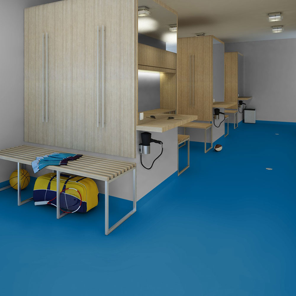Der Sportboden PVC bietet maximale Widerstandsfähigkeit gegen Abnutzung und Restverformungen – ideal für intensiv genutzte Bereiche.