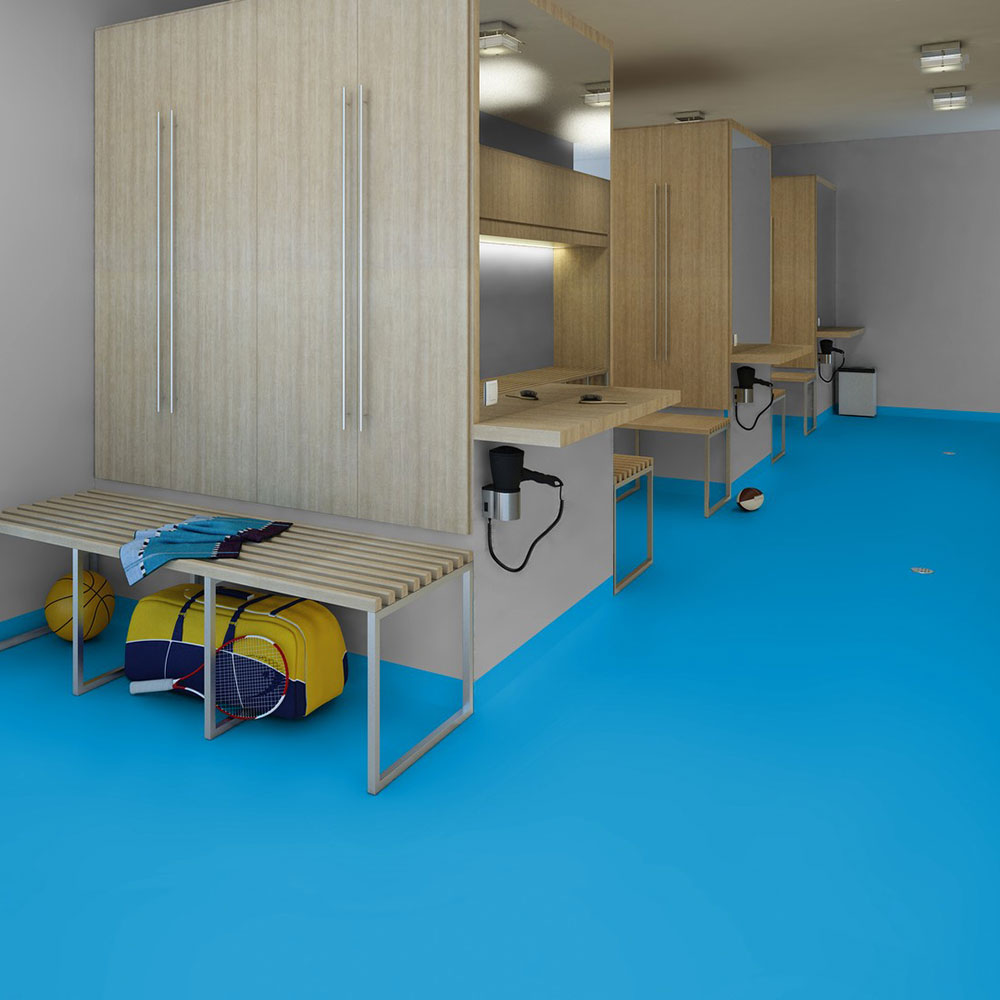 Der Sportboden PVC bietet maximale Widerstandsfähigkeit gegen Abnutzung und Restverformungen – ideal für intensiv genutzte Bereiche.